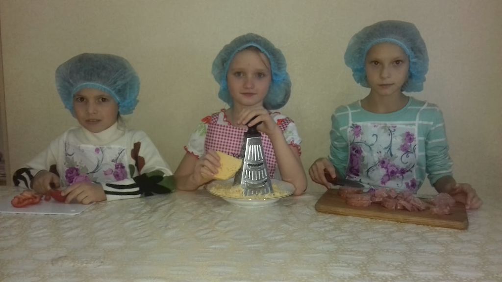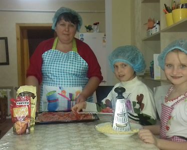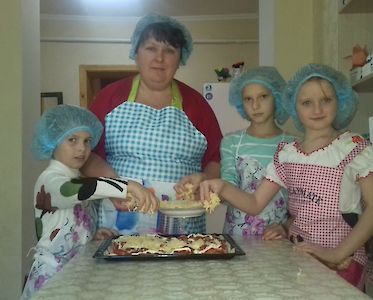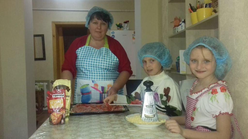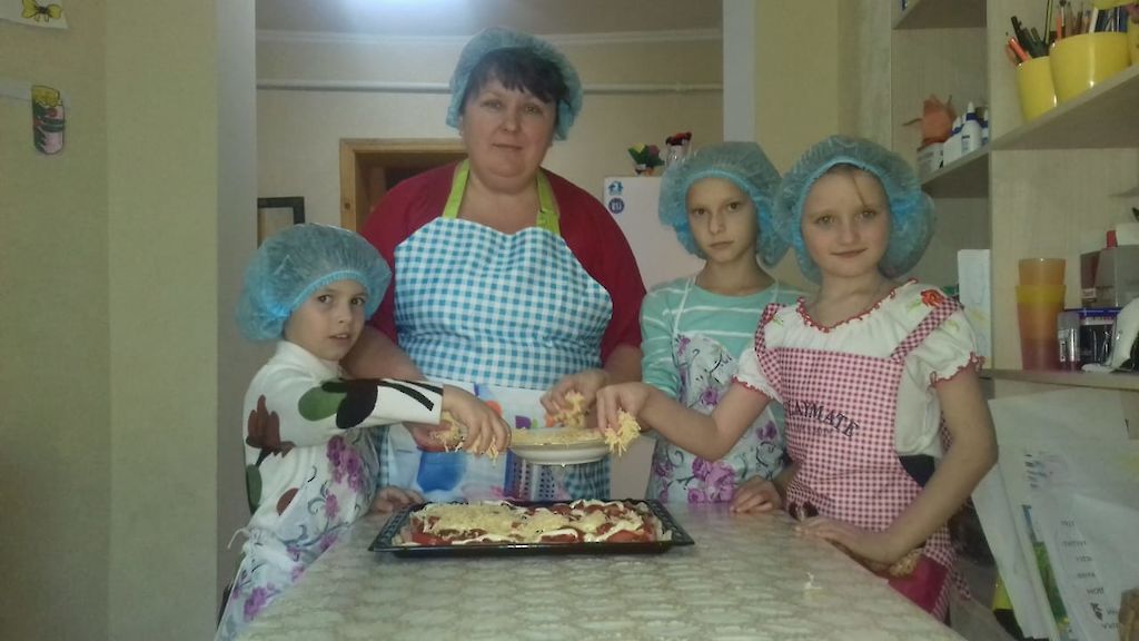 Der ganze „Zufluchtsort“ in Odarjewka duftet verführerisch nach Pizzateig. Unsere Pizzabäcker sind wieder einmal am Werk. Sie probieren neue Rezepte im Rahmen unserer „Kleinen Hausfrauen“ aus. Das ist eine Gruppe von Mädchen, die viele nützliche Dinge für ihr späteres Leben lernen.