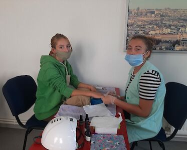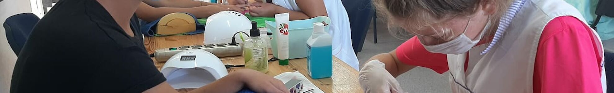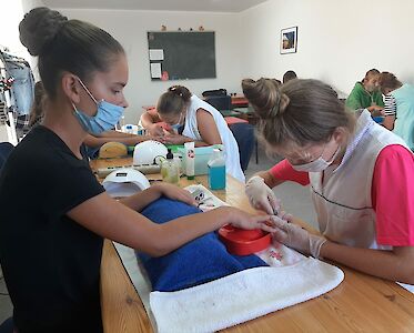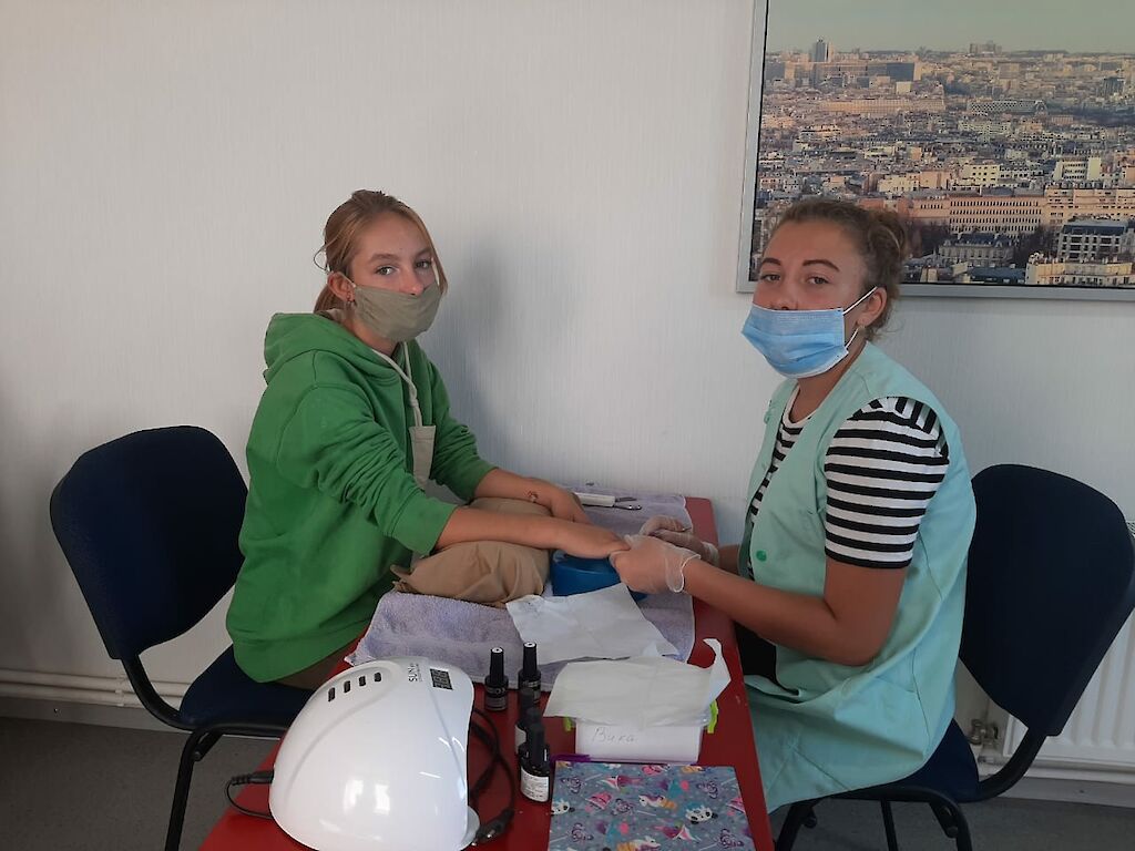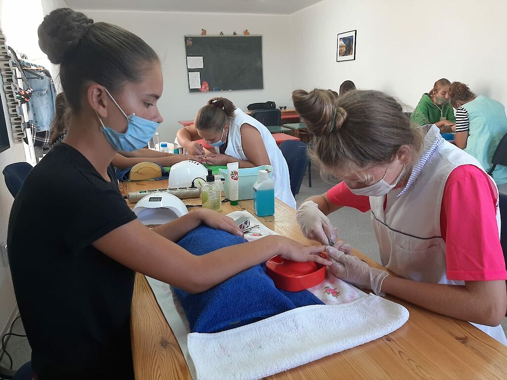 In der Ukraine besuchen viele Frauen regelmäßig kleine Studios für Maniküre, Pediküre und spezielle Frisörsalons. Deshalb bieten wir in unserer Lehrwerkstatt Kurse in diesem Bereich für Mädchen an, da man in diesen Salons leicht eine Arbeitsstelle findet.