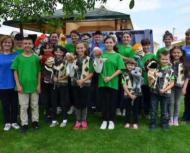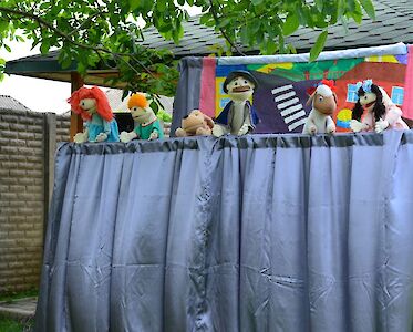 Die Jungs bauen die Leinwand auf oder legen die Requisiten bereit. Andere bereiten die Puppen vor. „Ksenia, mach dir keine Sorgen, du schaffst das!“ Unsere neuen Mitspieler werden von den erfahrenen Künstlern ermutigt. Die Aufführung beginnt. Das Publikum verfolgt gespannt den Abenteuern des Schafes Skipi. Hinter der Leinwand erfüllt jeder fleißig seine Aufgaben. Für einige Zeit tauchen die Zuschauer und die Schauspieler in eine Welt ein, in der es keinen Krieg gibt.