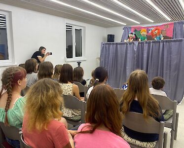 Sehr versiert bauen unsere Kinder vom Tageskinderheim inzwischen das Puppentheater auf und sammeln sich kurz vor der Aufführung. Das Puppentheater Projekt ist nicht nur für das glückliche und dankbare Publikum eine große Bereicherung, sondern auch für die Darsteller. Wir sind sehr dankbar, dass unsere Mitarbeiterin Aliona Salimtschuk dieses wertvolle Projekt etabliert hat.