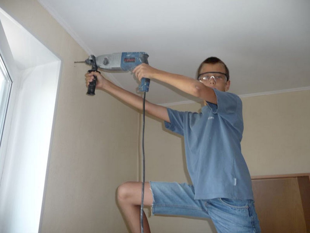 Wir sind froh, dass wir die Renovierungsarbeiten im Sommer durchführen können, wenn die Jungen und Mädchen draußen spielen. Seit wir „Villa Sonnenschein“ gekauft haben, wurde dort noch nicht renoviert.