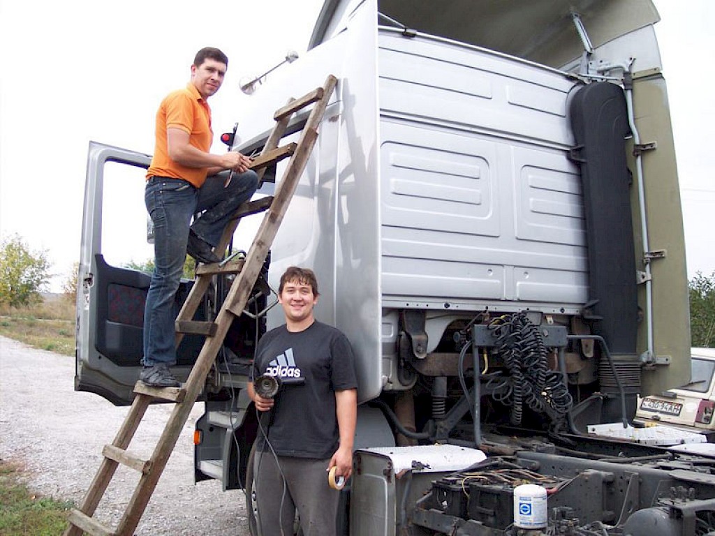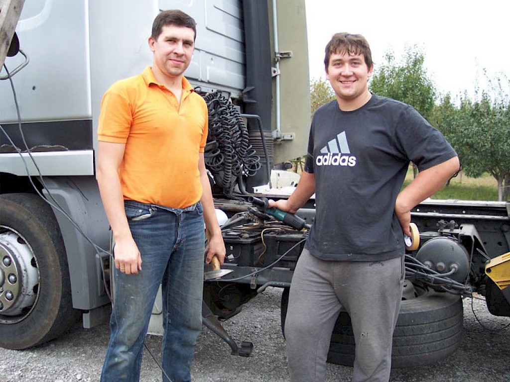 Jedes Jahr fährt unser 34 Tonnen LKW tausende von Kilometern, um Hilfsgüter in Deutschland abzuholen und um sie in die Ukraine zu transportieren. Da fallen natürlich öfter Reparaturarbeiten an.