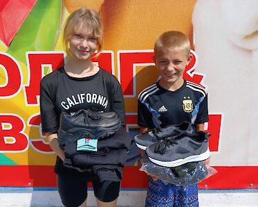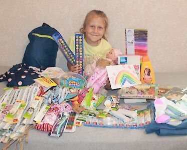 „Mama schau mal, ich habe eine tolle Puppe bekommen. Ich freue mich so darüber!“ Die kleine Rita staunt über das Paket, das sie aus Deutschland erhalten hat. „Stas, dieses Fahrrad ist für Dich!“ Mit unsicheren Schritten nähert sich der Junge dem Fahrrad. Schon lange hatte er davon geträumt. „Jetzt kann ich Milch und Brot holen, zum Zufluchtsort und zu meinen Freunden fahren.“ Stas ist überglücklich! Nastja und Igor haben Kleider und Schuhe erhalten, damit sie im Winter nicht frieren müssen.