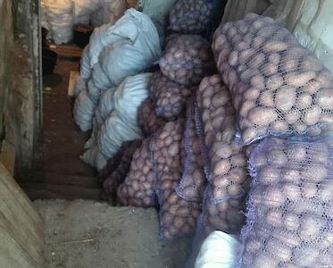 Ein wichtiges Nahrungsmittel in der Ukraine ist die Kartoffel. Unsere Mitarbeiter kaufen in diesen Tagen große Mengen an Saatkartoffeln. Viele Menschen uns den Dörfern fahren normalerweise im Frühjahr auf den Markt, um dort ihre Saatkartoffeln zu verkaufen.