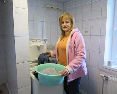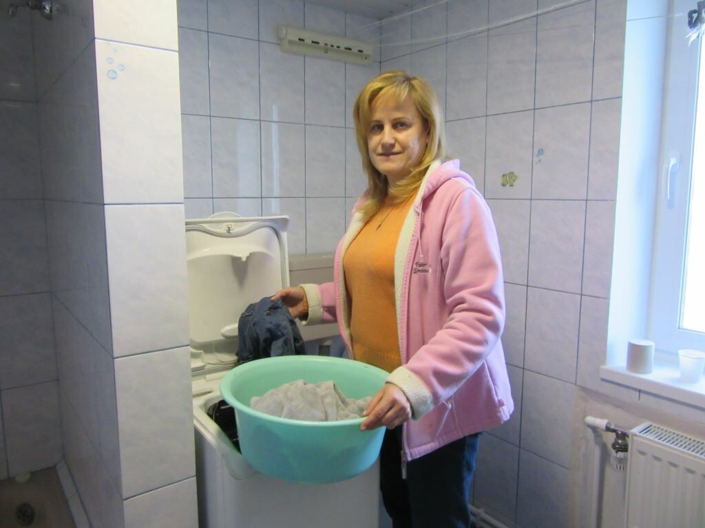 Während die Waschmaschine läuft, können wir uns über die Sorgen der Mütter unterhalten und versuchen Lösungen für ihre Probleme zu finden. Und bevor sie wieder nach Hause gehen, helfen sie uns die Wäsche im Garten hinter unserem Haus aufzuhängen.