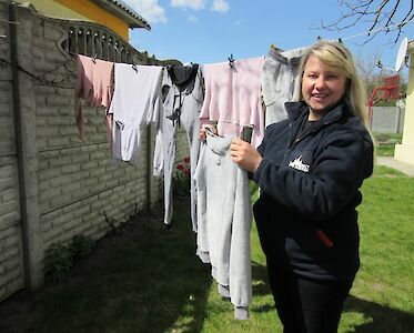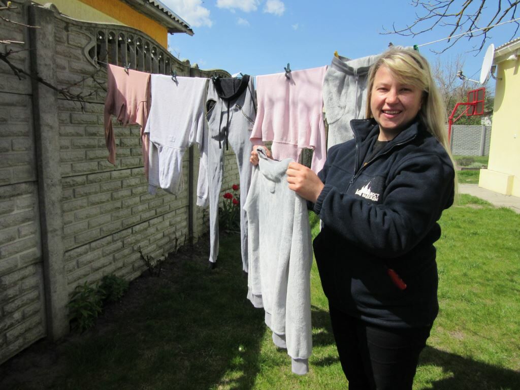 „Ich bin so froh, dass ich auch während der „Corona-Krise“ die Kleidung meiner Kinder zu euch bringen kann, dass ihr sie in eurer Waschmaschine wascht.“ Olga Merkuschina hat wieder einen großen Korb mit schmutziger Kleidung in unser „Tageskinderheim am See“ gebracht.