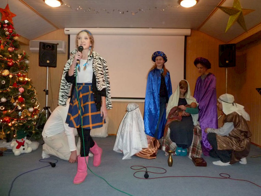 Die Jungen und Mädchen, die unsere Kinderhäuser besuchen, kommen aus heruntergekommenen Hütten, in denen es nur Kälte und keinerlei Abwechslung gibt. In den vergangenen Tagen kam eine Theatergruppe aus der Bethel Gemeinde aus Swetlowodsk und erfreute uns alle mit dem Theaterstück „Die Schneekönigin“.
