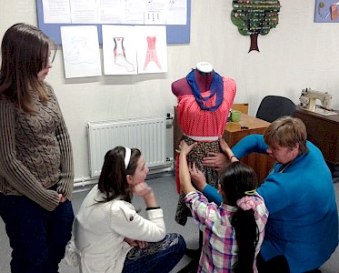 Genau zu diesem Zeitpunkt, als wir das erste Projekt angingen, traf ein wunderbares Geschenk aus der Andreas Gemeinde, aus Osnabrück, ein: eine Schneiderpuppe. Keine gewöhnliche Schneiderpuppe, sondern eine, die man in verschiedene Größen verstellen kann. Sie wurde natürlich erst einmal von allen Seiten bewundert.