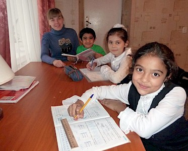 Bei unseren vier Erstklässlern ist das nicht anders. Besonders David und Kolja können keine zehn Minuten auf einem Stuhl sitzen, um ihre Hausaufgaben zu machen. Da ist die Geduld von Sweta Gorobetz gefragt.