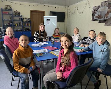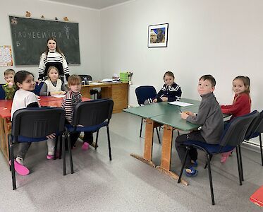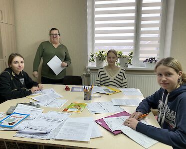 Um die Mädchen und Jungen zu fördern, haben wir unsere Schule in Kriegszeiten begonnen. Wir unterrichten Mathematik und Ukrainisch. Neben dem Unterricht trinken wir gemeinsam Tee, essen Kekse und unterhalten uns mit den Kindern. Immer mehr Kinder kommen und fragen, ob sie auch in „unsere“ Schule gehen dürfen. Sie freuen sich auf die nächste Schulstunde und sind froh, dass sie bei uns lernen können. Sie hoffen, dass der Krieg bald endet.