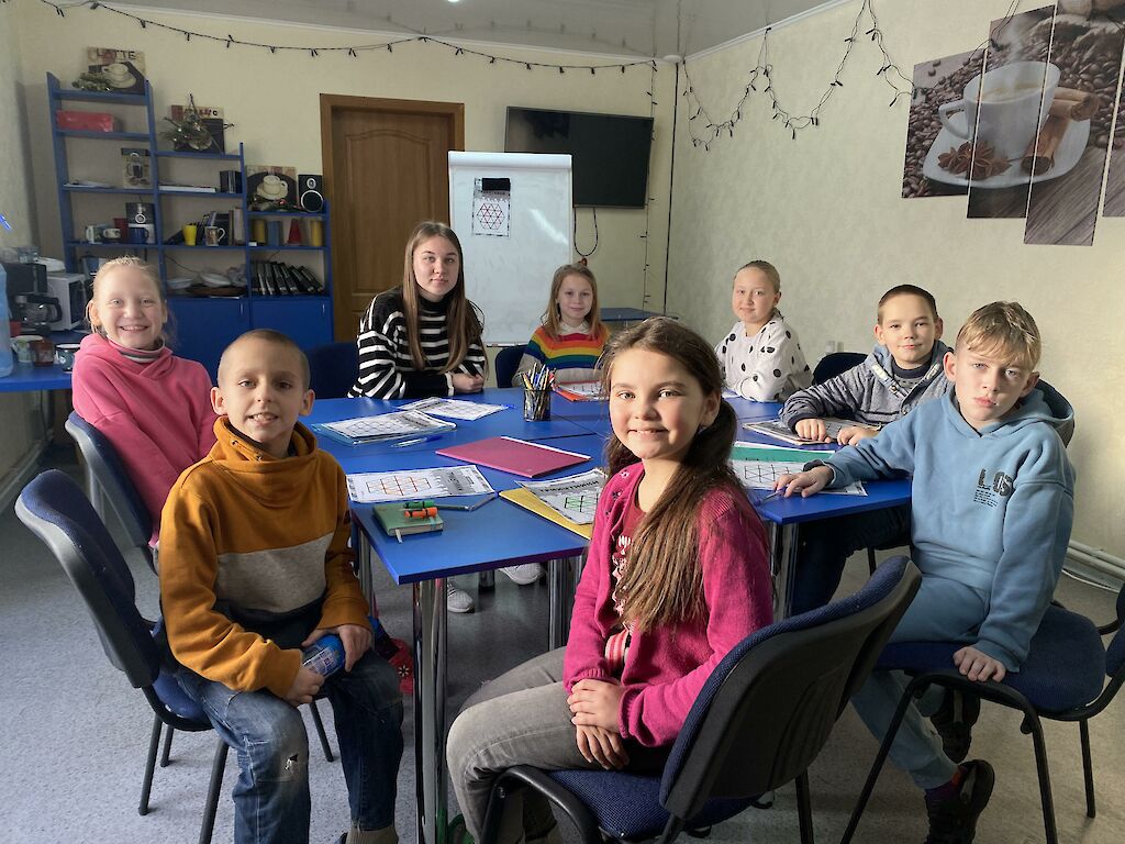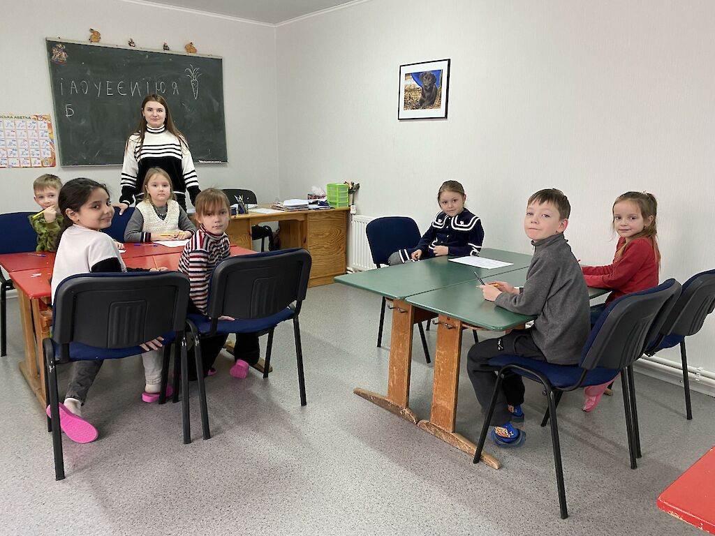 Um die Mädchen und Jungen zu fördern, haben wir unsere Schule in Kriegszeiten begonnen. Wir unterrichten Mathematik und Ukrainisch. Neben dem Unterricht trinken wir gemeinsam Tee, essen Kekse und unterhalten uns mit den Kindern. Immer mehr Kinder kommen und fragen, ob sie auch in „unsere“ Schule gehen dürfen. Sie freuen sich auf die nächste Schulstunde und sind froh, dass sie bei uns lernen können. Sie hoffen, dass der Krieg bald endet.