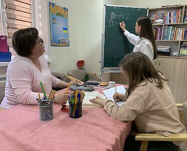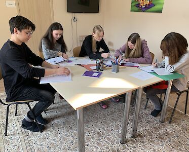 Zweimal pro Woche findet in Villa Sonnenschein unsere Schule in Kriegszeiten statt. Die Erzieherinnen unterrichten Ukrainisch und Mathematik. Die Kinder lernen nicht nur lesen, sie erfahren auch wissenswertes über das Leben und die Geschichte der Ukraine. In unserer Schule können sie ihre Freunde treffen und Kontakte knüpfen. Viele staatliche Schulen haben geschlossen, der Unterricht findet ausschließlich über das Internet statt. Doch nicht jedes Kind hat einen Computer, Internetverbindung oder ein Smartphone.