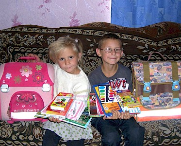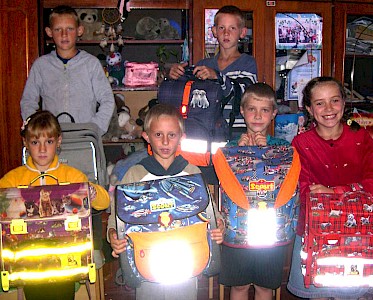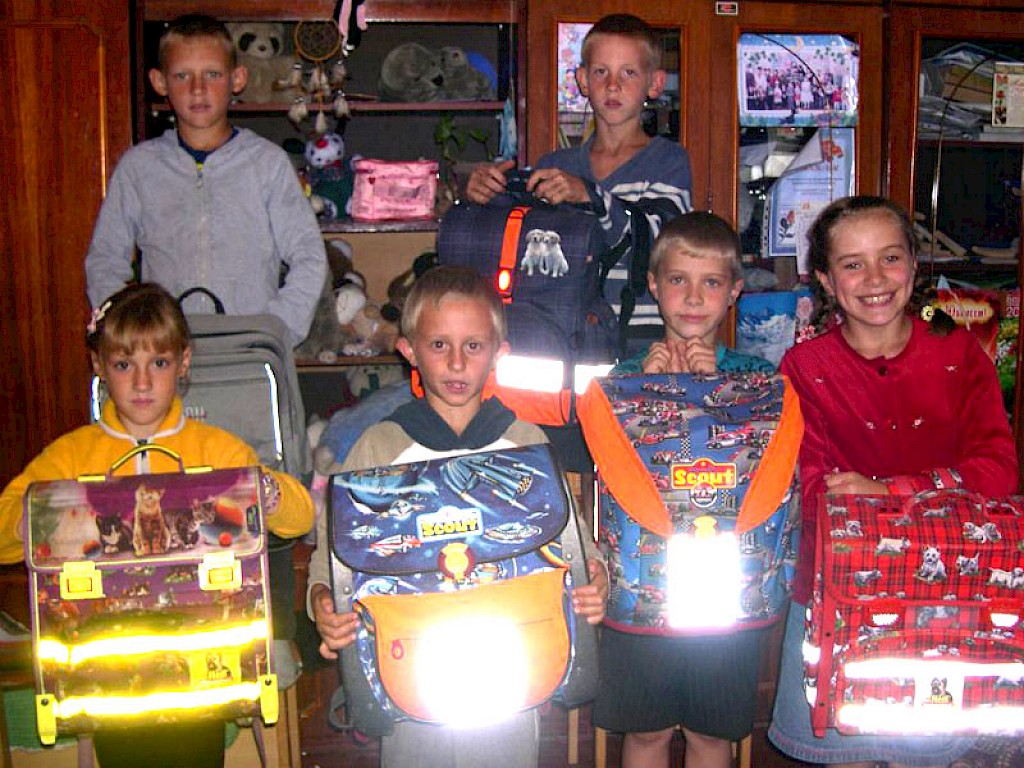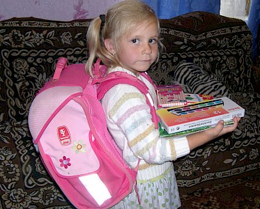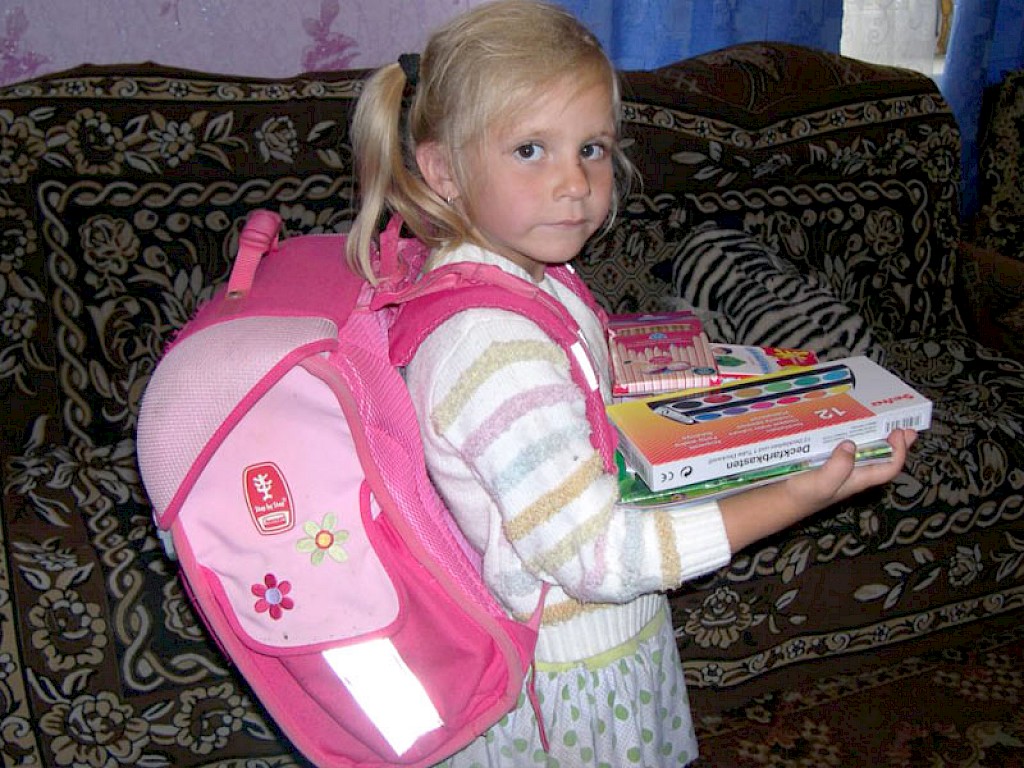 Ende August wurden die Familien mit einem weiteren Problem konfrontiert, von welchem Geld sollen sie Schulranzen und Schulmaterial für ihre Kinder kaufen? Auf dem letzten LKW Transport konnten wir viele Schulranzen und Schulmaterial mitbringen. Die Freude ist groß, und alle beschenkten Familien lassen ganz herzlich für die unerwartete Hilfe danken!