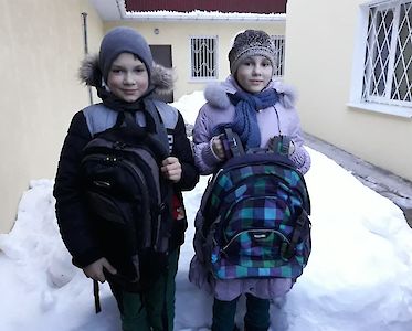 Oft gehen unsere Mädchen und Jungen mit einer alten Plastiktüte statt einem Ranzen in die Schule und schämen sich. Da ist es natürlich ein wertvolles Geschenk, wenn unser 34 Tonnen Lastwagen viele Schulranzen von Deutschland zu uns nach Swetlowodsk bringt.