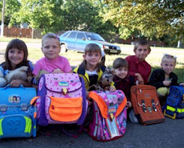 Am 3. September ist es wieder so weit, ein neues Schuljahr fängt an. Besonders die Mütter aus armen Familien schauen ängstlich diesem Tag entgegen. Von welchem Geld sollen sie das Schulmaterial bezahlen. Am vergangenen Wochenende hatten unsere Mitarbeiter aus Krinitschki einen Missionseinsatz in Wetrowka, einem der unzähligen „Vergessenen Dörfern“ der Ukraine. Diesmal kamen wir nicht nur mit Hilfsgütern, in unserem großen Bus hatten wir viele bunte Schulranzen aus Deutschland geladen, gefüllt mit Schulmaterial. Die Freude war natürlich groß. Die meisten der armen Kinder tragen die wenigen Utensilien die sie haben in Plastiktüten zur Schule. Nun werden sie sich am Montag zum ersten Mal ganz stolz mit einem richtigen Schulranzen auf den Schulweg machen.
