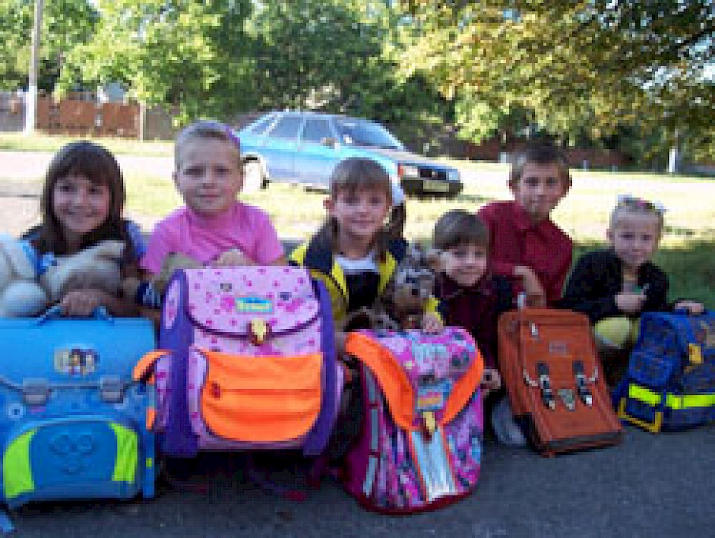 Am 3. September ist es wieder so weit, ein neues Schuljahr fängt an. Besonders die Mütter aus armen Familien schauen ängstlich diesem Tag entgegen. Von welchem Geld sollen sie das Schulmaterial bezahlen. Am vergangenen Wochenende hatten unsere Mitarbeiter aus Krinitschki einen Missionseinsatz in Wetrowka, einem der unzähligen „Vergessenen Dörfern“ der Ukraine. Diesmal kamen wir nicht nur mit Hilfsgütern, in unserem großen Bus hatten wir viele bunte Schulranzen aus Deutschland geladen, gefüllt mit Schulmaterial. Die Freude war natürlich groß. Die meisten der armen Kinder tragen die wenigen Utensilien die sie haben in Plastiktüten zur Schule. Nun werden sie sich am Montag zum ersten Mal ganz stolz mit einem richtigen Schulranzen auf den Schulweg machen.