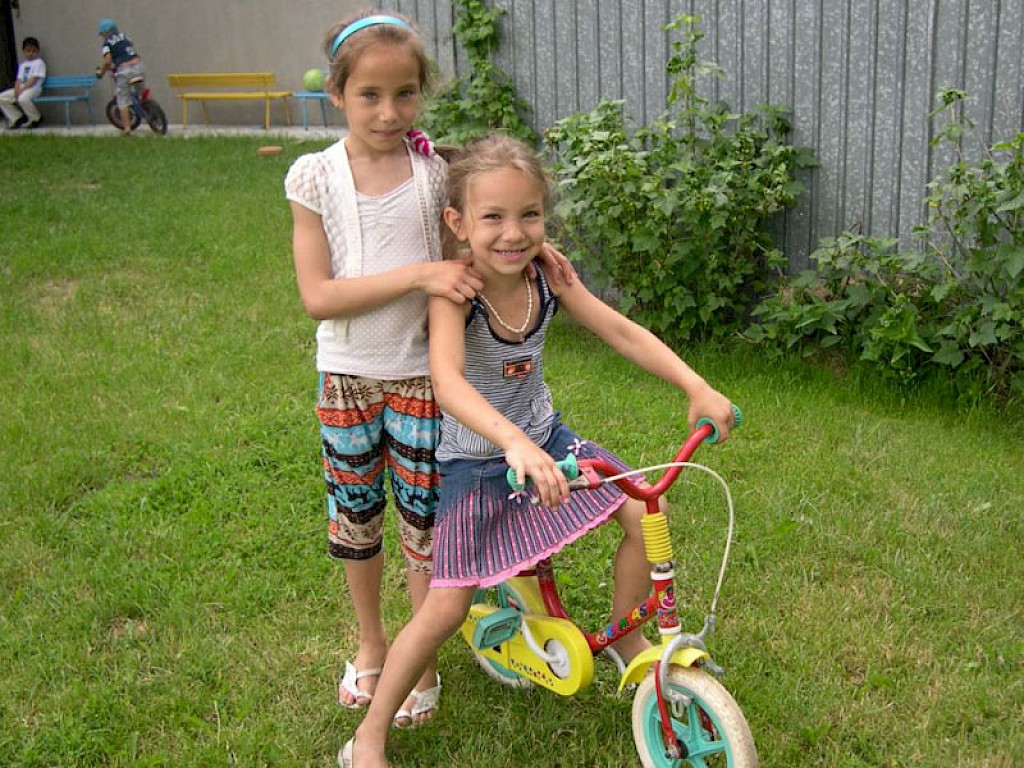 „Tante Lena, schau mal, ich kann schon richtig mit einem Fahrrad fahren!“ Ganz stolz präsentiert ein Junge aus unserem „Spatzennest“ seine Fahrkünste. In den langen Sommerferien, die in der Ukraine drei Monate dauern, sollen sich die Jungen und Mädchen erholen. Doch schon jetzt denken wir an das nächste Schuljahr.
