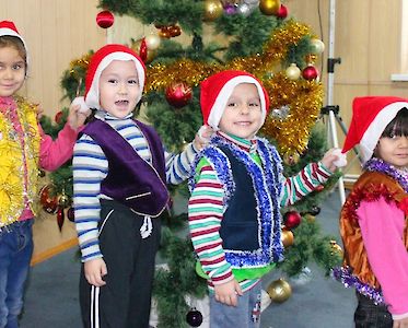Heute ist ein spannender Tag. Wika Gusenok, die unser „Spatzennest“ leitet, trägt große Kartons mit Weihnachtsdekorationen in das Klassenzimmer. Mit offenem Mund bestaunen die Kinder die Schätze, die wir aus Deutschland mitgebracht haben.
