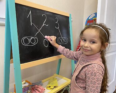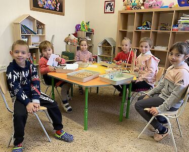 Unsere Spatzen kommen gerne. Leider geht das bei Luftalarm oft nicht und sie müssen zu Hause bleiben. Wir fördern die Kinder, bereiten sie auf die Schule vor. Und wir spielen zusammen. Wir denken uns Aufgaben aus, die sie in den Kellerräumen bei Sirenengeheul erledigen können. Gemeinsam träumen wir von einem normalen Leben, von einem Leben ohne Krieg.
