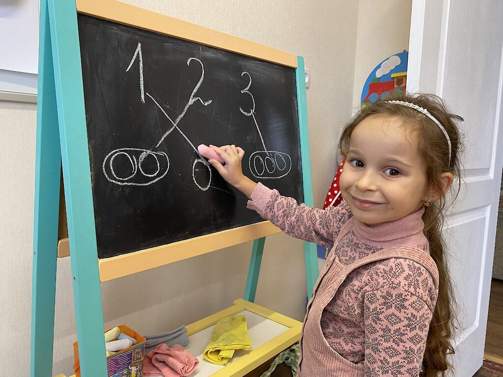 Unsere Spatzen kommen gerne. Leider geht das bei Luftalarm oft nicht und sie müssen zu Hause bleiben. Wir fördern die Kinder, bereiten sie auf die Schule vor. Und wir spielen zusammen. Wir denken uns Aufgaben aus, die sie in den Kellerräumen bei Sirenengeheul erledigen können. Gemeinsam träumen wir von einem normalen Leben, von einem Leben ohne Krieg.