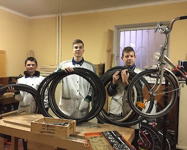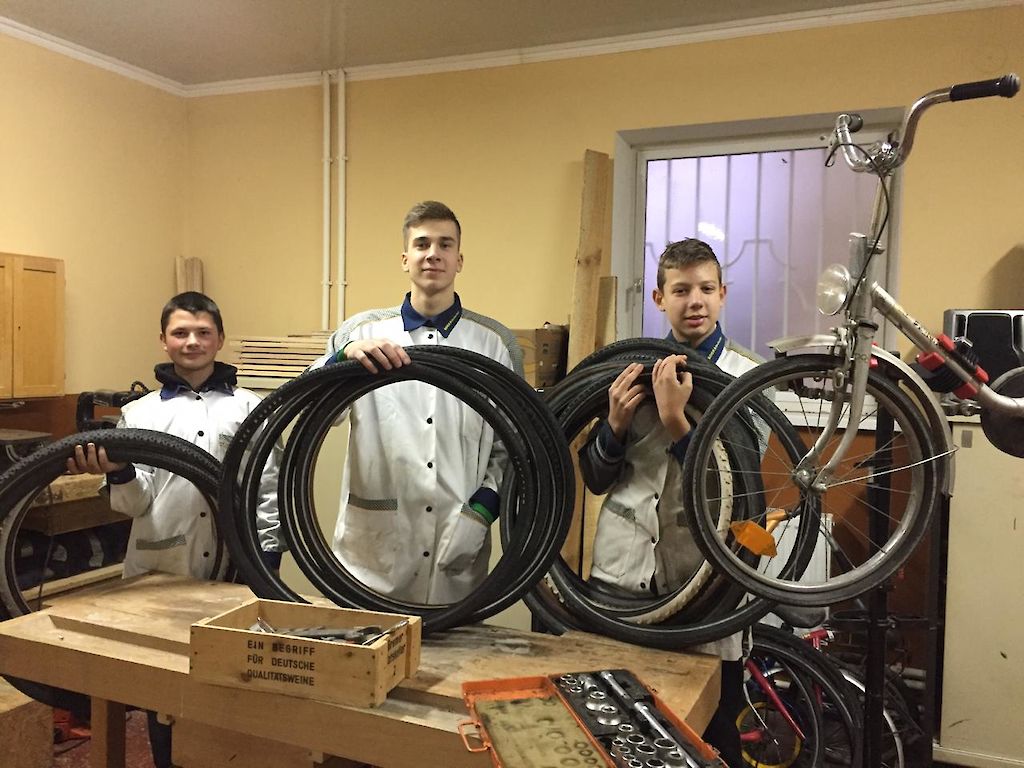 Im vergangenen September brachte unser Hilfsgütertransport die Fahrradschläuche nach Swetlowodsk. Der Leiter unserer Fahrradwerkstatt Mark Bogumasiuk hat sich sehr darüber gefreut. Da die Straßenverhältnisse in der Ukraine sehr schlecht sind, sind die Räder unserer Kinder ständig kaputt. Viele „Straßen“ bestehen hauptsächlich aus Schlaglöchern, der Teer ist gerissen oder fehlt ganz. Da kam die Spende aus Deutschland zum richtigen Zeitpunkt. Jetzt können die Jungs ihre Räder fleißig reparieren.