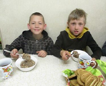 In Odariwka, einem kleinen Dorf, in dem einer unserer „Zufluchtsorte“ liegt, gibt es bisher nur selten Bombenalarm. Trotzdem bestimmt der Krieg den Alltag unserer Kinder. „Tante Tanja, es ist Fliegeralarm! Schnell! Komm zu uns!“ Tanja Kononenko, unsere Erzieherin, läuft in das Spielzimmer. Am Boden haben die Jungen mit Legosteinen, Spielekartons und anderem Material eine Wand gebaut. „Unsere Mauer ist gepanzert. Keine einzige Bombe kann hier durchbrechen! Schau, wir verstecken uns.“ Auf Kommando fallen alle Jungs auf den Boden.
