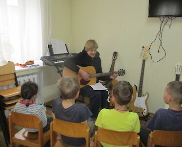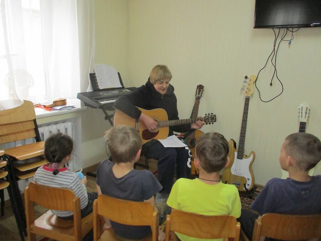 Der Krieg prägt das Spiel der Jungen. Trotzdem versuchen unsere Erzieherinnen Hoffnung zu verbreiten. Sie hören zu, umarmen die Kinder, essen zusammen, singen Lieder mit ihnen.