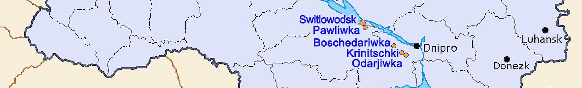 Unser Hauptsitz ist in Swetlowodsk, ca. 300 km südöstlich von Kiew. Unsere anderen Standorte reihen sich weiter südöstlich ein.