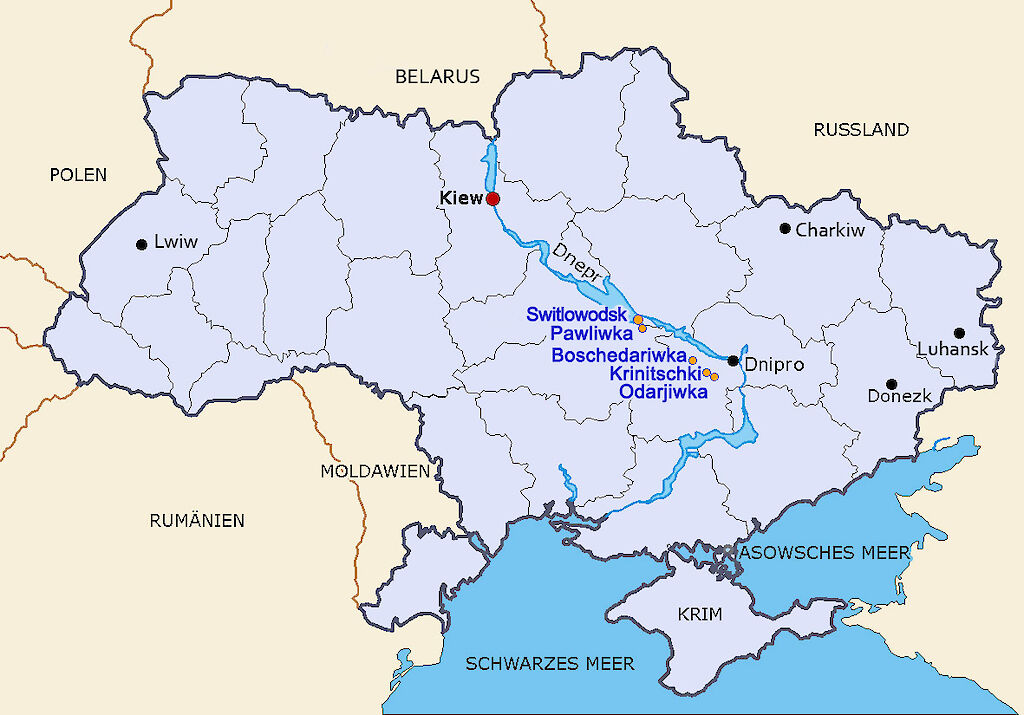 Unser Hauptsitz ist in Swetlowodsk, ca. 300 km südöstlich von Kiew. Unsere anderen Standorte reihen sich weiter südöstlich ein.