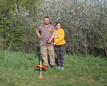 „Ich kam erschöpft aus dem Krieg zurück. Lange habe ich darüber nachgedacht, wie ich ein bisschen Geld verdienen könnte. Und dann begannen meine Nachbarinnen, deren Ehemänner im Krieg kämpfen, mich zu fragen, ob ich die Sträucher in der Nähe ihrer Häuser entfernen könnte.“ Brücke der Hoffnung finanzierte die benötigten Geräte.