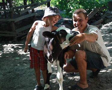 „Wir sind sehr dankbar für die Hilfe bei der Beschaffung der Kälber. Es dauert noch lange, bis sie Milch geben. Aber Milka und Dunja sind unsere Zukunft“, sagt Dima.