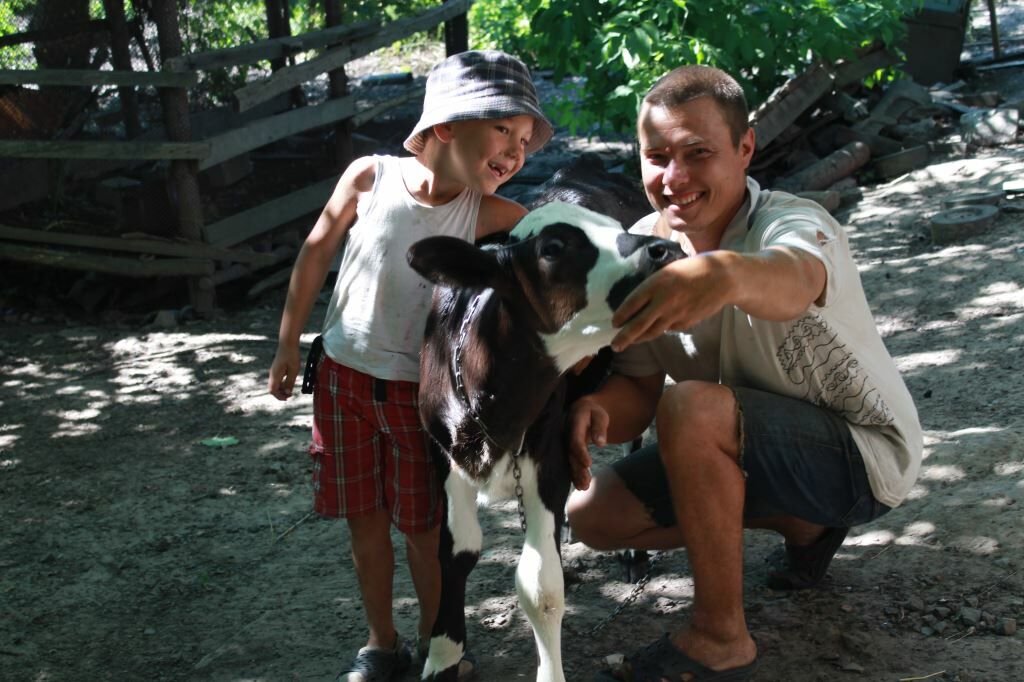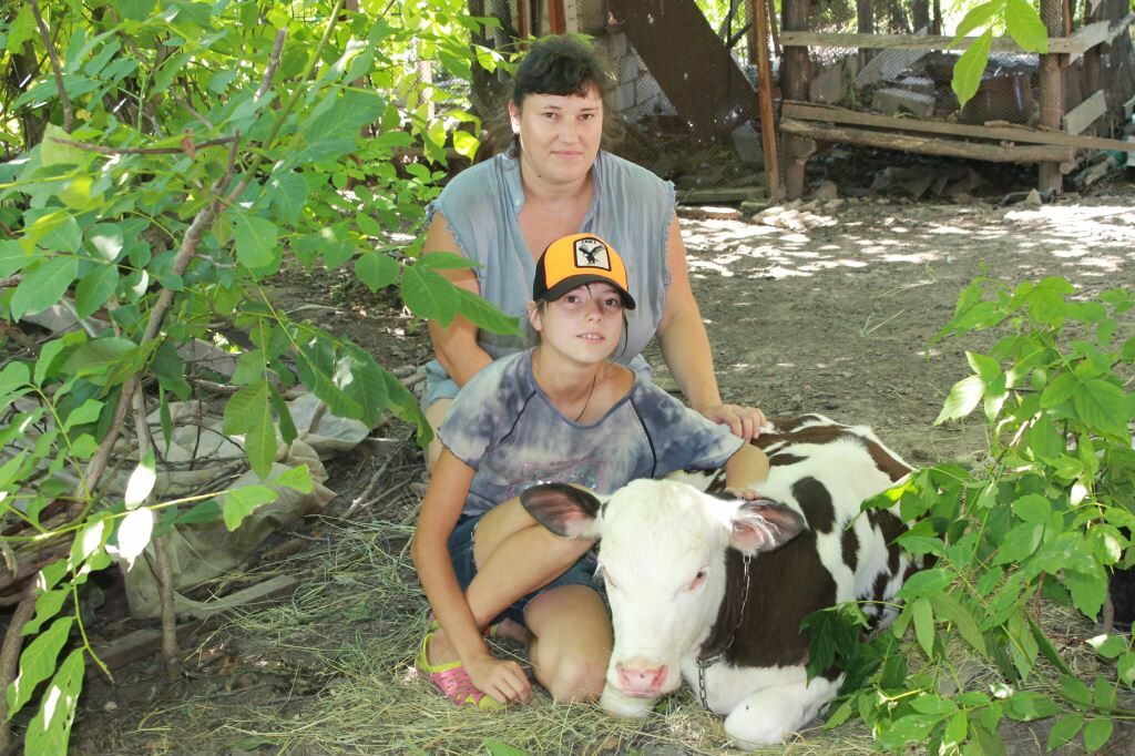 Familie Witjonowa plante, eine Kuh zu kaufen. Sie wollten Käse, saure Sahne, Butter und Joghurt aus der Milch herstellen. Doch dann kam der Krieg. Dima wurde arbeitslos, Anja hatte eine Operation und die geringen Ersparnisse waren schnell aufgebraucht. Wir haben beschlossen, der Familie zu helfen und haben ihnen zwei Milchkälber gekauft. Milka und Dunja sind die Lieblinge der Familie. Tochter Nastja versorgt sie mit Wasser. Dima macht Heu für den Winter. Tagsüber verstecken sich die Kälbchen vor der Sonne unter den Bäumen im Garten.