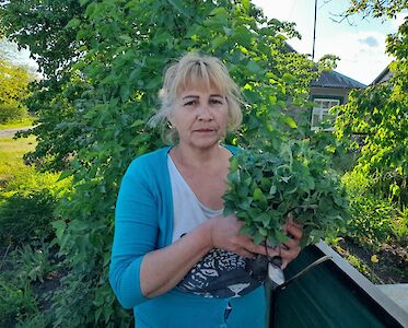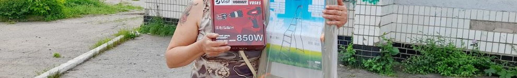 Alina verdiente viele Jahre lang ihren Lebensunterhalt mit kleineren Reparaturen. “Vor dem Krieg habe ich die Wände im Schulgebäude gespachtelt. Am ersten Kriegstag verstaute ich das Baumaterial und meine Ausrüstung im Schulschrank. Die Bauarbeiten wurden gestoppt.” Als Alina später in die Schule ging, um ihre Sachen zu holen, war alles gestohlen worden. Ein Schock für die Frau! Alina konnte nicht mehr arbeiten und kein Geld mehr verdienen. Wir kauften ihr die nötigsten Werkzeuge. “Ich weiß nicht, wie ich euch danken soll! Ihr habt mir so geholfen, das werde ich euch nie vergessen,” freute sich Alina.