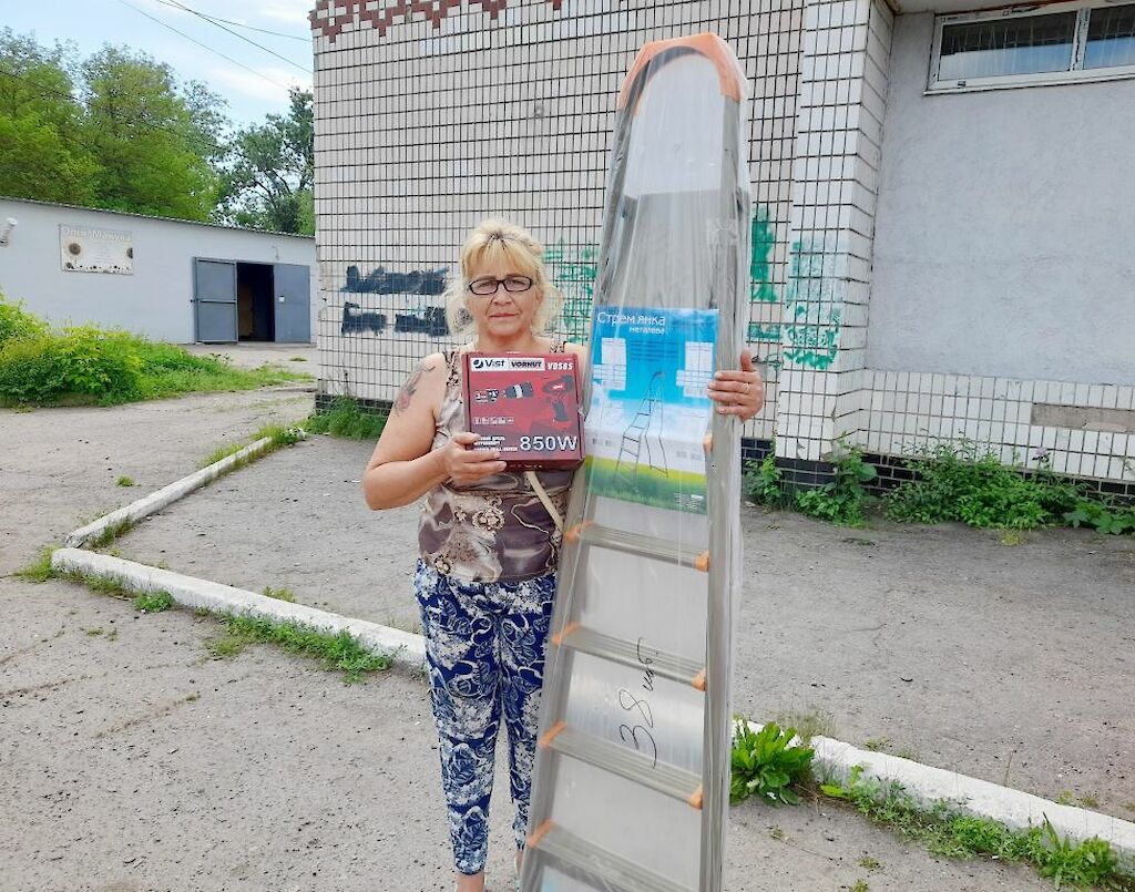 Alina verdiente viele Jahre lang ihren Lebensunterhalt mit kleineren Reparaturen. “Vor dem Krieg habe ich die Wände im Schulgebäude gespachtelt. Am ersten Kriegstag verstaute ich das Baumaterial und meine Ausrüstung im Schulschrank. Die Bauarbeiten wurden gestoppt.” Als Alina später in die Schule ging, um ihre Sachen zu holen, war alles gestohlen worden. Ein Schock für die Frau! Alina konnte nicht mehr arbeiten und kein Geld mehr verdienen. Wir kauften ihr die nötigsten Werkzeuge. “Ich weiß nicht, wie ich euch danken soll! Ihr habt mir so geholfen, das werde ich euch nie vergessen,” freute sich Alina.