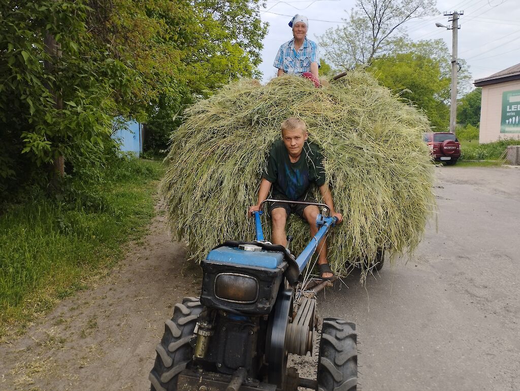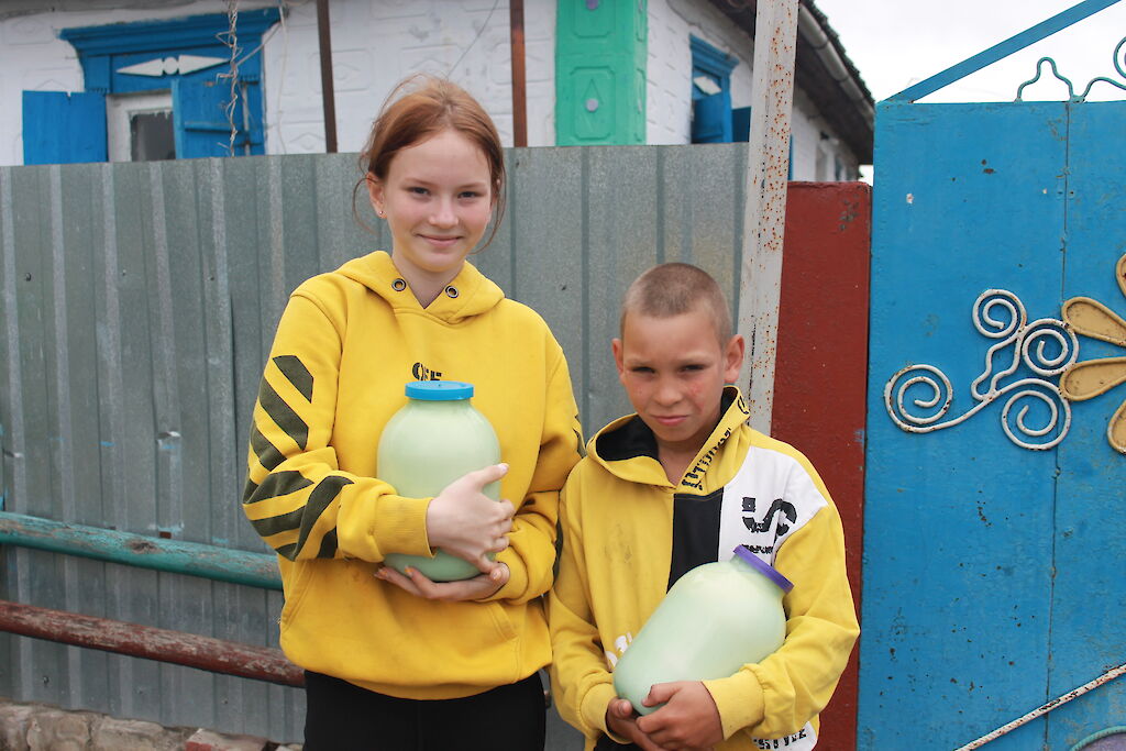 Dank unseres Starthilfe-Projektes haben einige Familien eine Kuh von uns erhalten, eine Kuh als Ernährer. Sie liefert Milch, saure Sahne, Käse, Butter und Kefir. Die Familien haben auch die Möglichkeit, Milchprodukte zu verkaufen und damit Geld zu verdienen. Die Menschen bemühen sich, Futter für die Kühe anzubauen. In ihren Gärten haben sie Kartoffeln gepflanzt, Heu ernten sie für den Winter.
