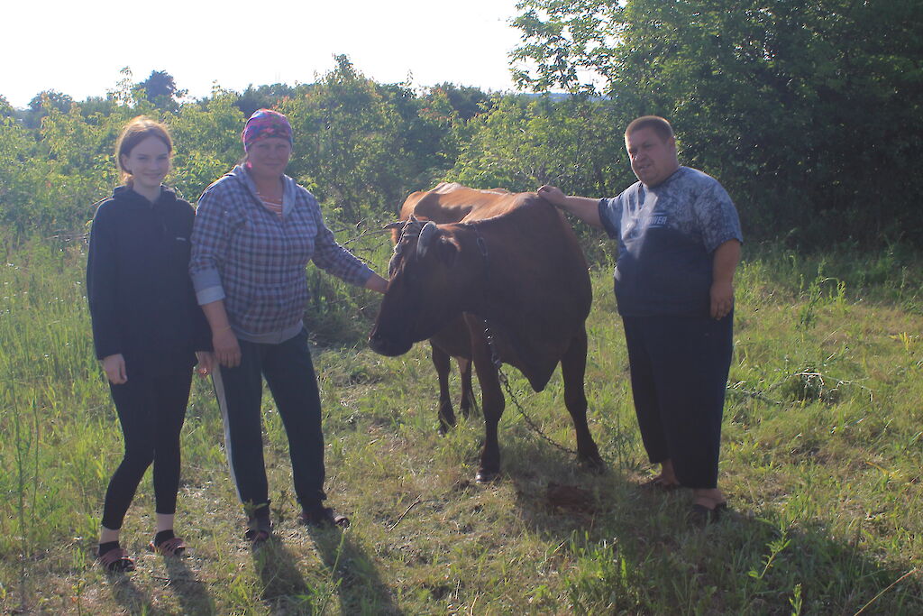 „Unsere Familie ist Ihnen sehr dankbar für die Kuh. Wir haben so lange davon geträumt, haben sogar etwas Geld gespart. Aber der Krieg hat all unsere Pläne zunichte gemacht. Wir haben nicht einmal mehr genug Geld für das Nötigste.“ Natascha streichelt liebevoll über den Rücken von Lasunka.