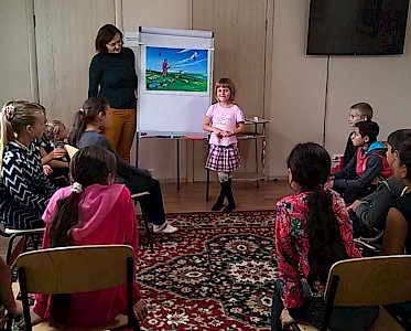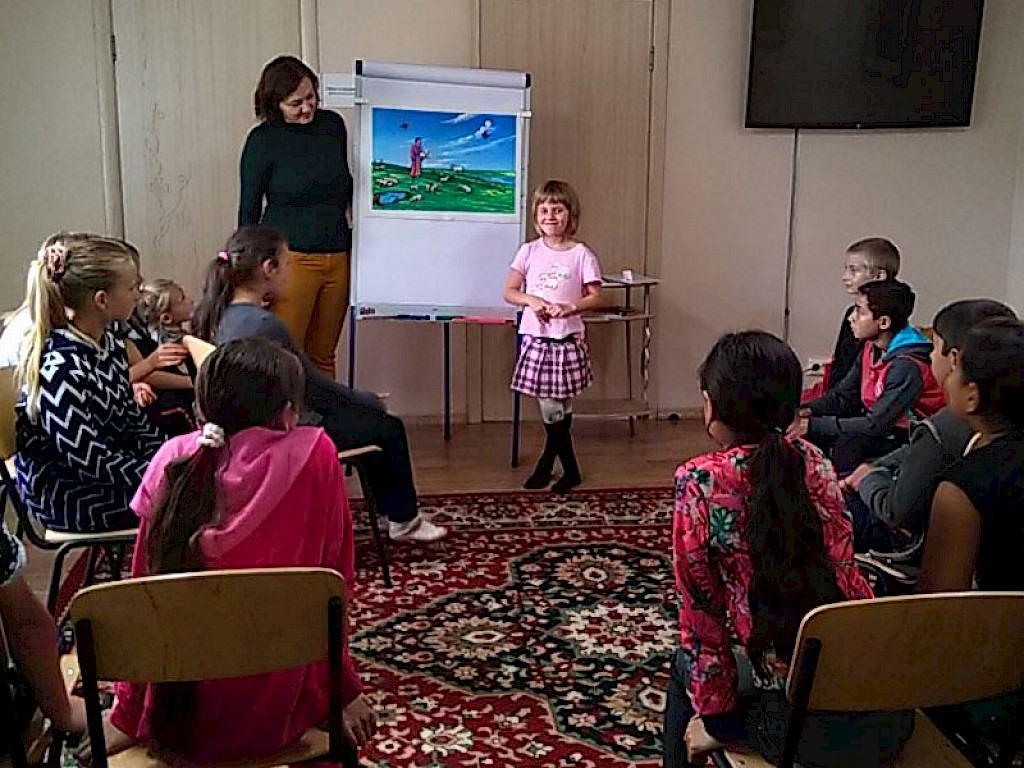 Dann beginnt unser Programm. Wir singen ein Lied, denken über den Film nach und spielen ein lustiges Spiel, das zum Thema passt. Am Ende beten wir gemeinsam das „Vater unser“. Als Wanja den Raum verlässt, spüren wir, wie erleichtert er ist, dass alles gut geklappt hat.