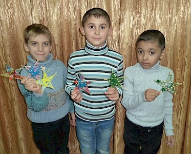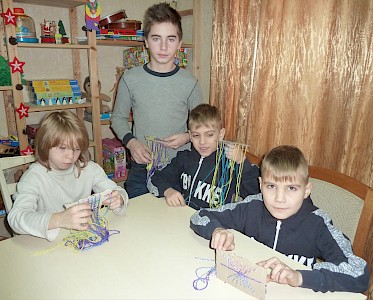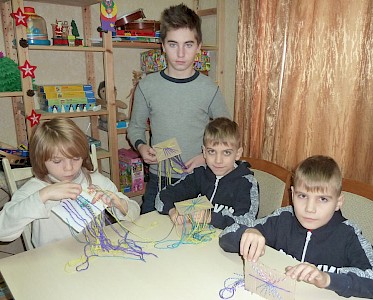 Tamerlan bereitet die Handarbeitsstunden vor, besorgt das Material und erklärt den Teilnehmern die Aufgabe. Die meisten Jungen haben keinen Vater, haben keine männliche Bezugsperson und fühlen sich in unserem „Supermen Club“ besonders wohl.