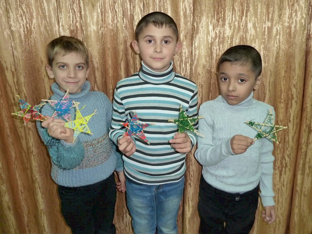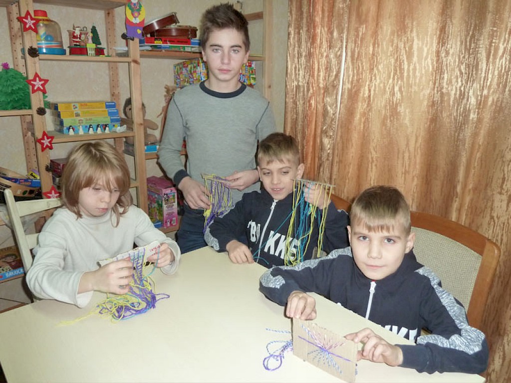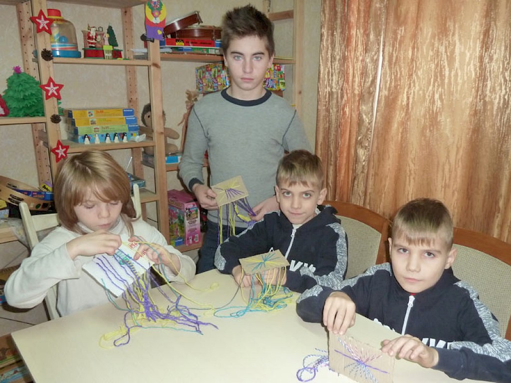 Tamerlan bereitet die Handarbeitsstunden vor, besorgt das Material und erklärt den Teilnehmern die Aufgabe. Die meisten Jungen haben keinen Vater, haben keine männliche Bezugsperson und fühlen sich in unserem „Supermen Club“ besonders wohl.