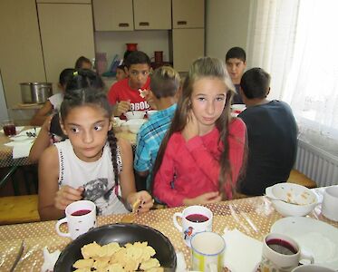 In „Villa Sonnenschein“ kommen in der Zwischenzeit so viele Kinder zum Mittagessen, dass wir unsere Suppenküche mehrmals öffnen, da wir nicht mehr für alle unsere Gäste Platz finden.