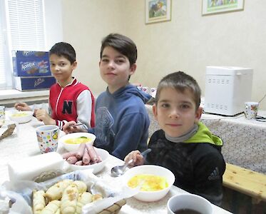 Hinter uns liegt ein anstrengendes Jahr, in dem die Menschen in den „Vergessenen Dörfern“ ums Überleben gekämpft haben und vor uns liegen noch einige harte Winterwochen. Für die Kinder aus Odarjewka ist unser „Zufluchtsort“ ein Platz an dem sie, in dieser hoffnungslosen Zeit, Ermutigung und ganz besonders etwas zu essen bekommen.