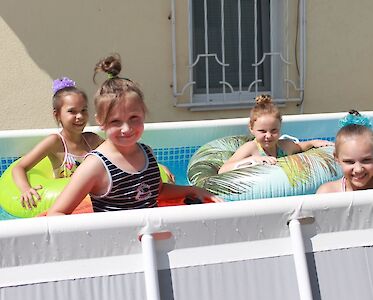 "Das sind meine Freundinnen Sascha und Katja. Dürfen sie heute mit uns im Pool schwimmen? Es ist es doch so warm," fragt Jana Pochilowa, während drei Augenpaare gespannt auf eine positive Entscheidung unserer Mitarbeiter warten. Nachdem die drei Mädchen grünes Licht erhalten haben, sind sie kaum mehr zu halten. Sascha und Katja sind begeistert und überwältigt von ihren Gefühlen! Sie fragen sich wie es möglich ist, dass Kinder aus einer armen Großfamilie in einem Swimmingpool entspannen dürfen. „Können wir wiederkommen? Bei euch ist es so schön!“