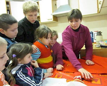 Natascha Mitina, die unsere Büroarbeit in unserem neuen „Zufluchtsort“ in Schorsk leitet, bekommt von einer jungen Frau Buchhaltungsunterricht. Nach der Schulstunde sitzen sie oft noch bei einer Tasse Tee zusammen und Natascha erzählt Taia Begebenheiten aus unserer Kinderarbeit.