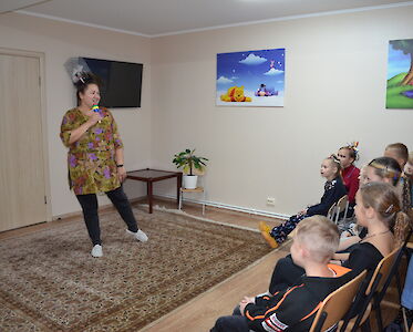 In Villa Sonnenschein veranstalteten wir eine Talentshow. Kinder trugen Gedichte vor, sangen, spielten auf Musikinstrumenten, tanzten oder turnten. Manche suchten sich Kostüme für ihren Vortrag aus.