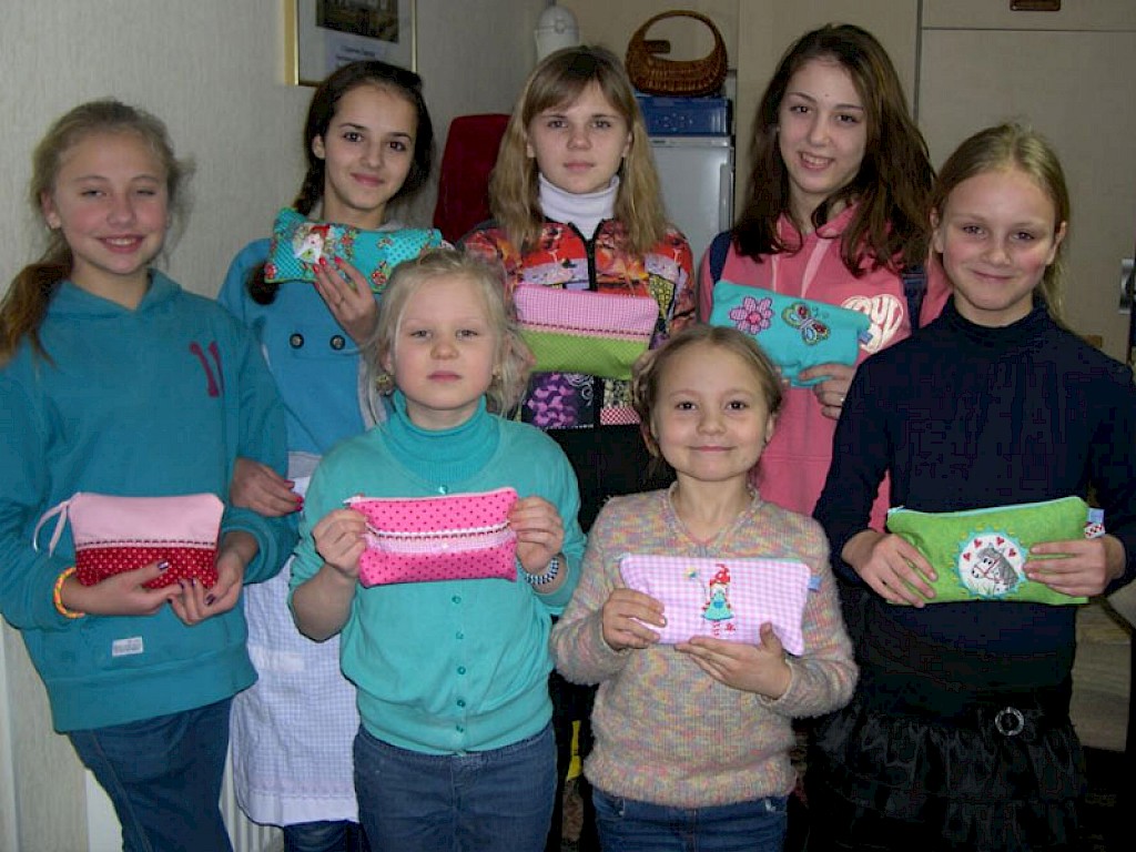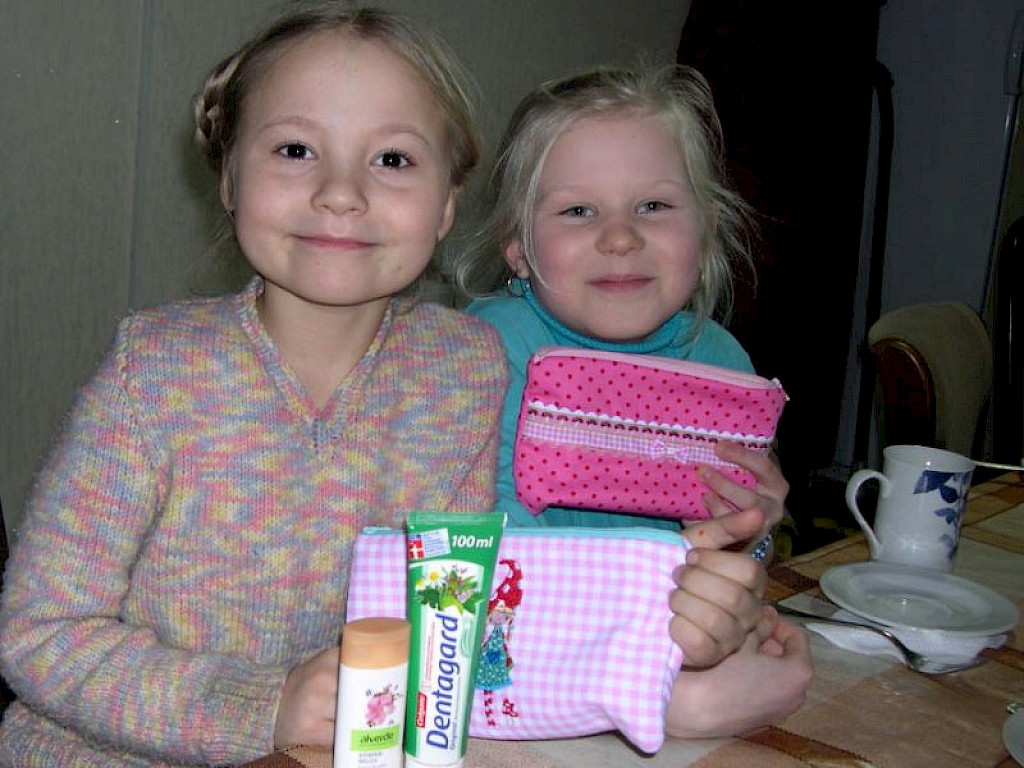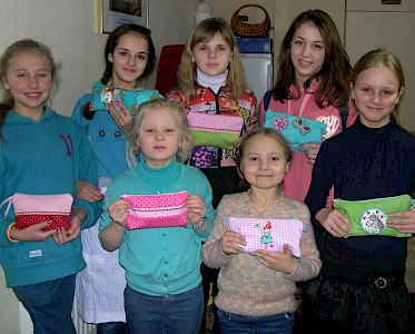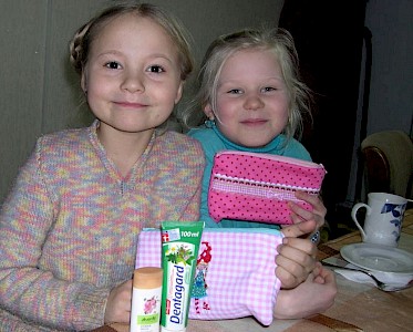Mehr Freude macht die Körperpflege mit der tollen Aktion einer Spenderin, die wunderschöne kleine, handgenähte Täschchen mit Körperpflegeprodukten und Schreibmaterial gefüllt hat. Die Freude der Mädchen über ein solches Geschenk ist unbeschreiblich!