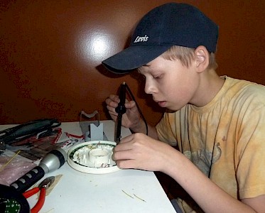 Die Lehrlinge aus unserer „Lehrwerkstatt“ haben nun ihren nächsten Kurs begonnen. Sie beschäftigen sich mit Elektrizität, mit Gleichstrom und mit Wechselstrom. Momentan lernen sie zu löten.