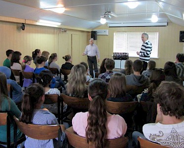 Gespannt sitzen unsere Teenager im 3. Stockwerk von unserer „Villa Sonnenschein“. Heute ist ein weitgereister Gastredner zu Besuch, Burkhard Rudat, unser Missionsleiter aus Deutschland. Er spricht über das Thema: „Wie kann ich geistlich wachsen und wie kann mein Glaube stabil werden?“