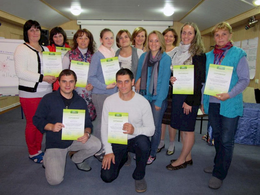 Wir sind froh, dass wir Lehrer gefunden haben, die in unsere Mitarbeiter im Umgang mit Kindern ausbilden, die solch schwere Lebensumstände verkraften müssen. Zwei von ihnen haben uns in Swetlowodsk zwei Tage lang Seminare zur Traumabewältigung gehalten.