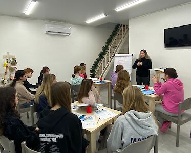 „Lisa, ich hatte schon befürchtet, dass die Lebensschule im Dezember nicht stattfinden wird. Wir hatten so lange keinen Handyempfang und wussten nicht, ob du uns abholen würdest. Ich bin so froh, dass du da bist.“ Lisa war mehrere Stunden unterwegs, um die Mädchen zu unserem Freizeitzentrum nach Pawliwka zu bringen. Auf dem Programm, das normalerweise Seminare und Diskussionen umfasst, stand dieses Mal die Weihnachtsfeier mit Geschenken, Spaß und Unterhaltung. Innerhalb kurzer Zeit haben sich die Mädchen aus verschiedenen Teilen der Ukraine angefreundet und sind gute Freundinnen geworden. Gemeinsam bereiten sie sich auf die Zeit nach der Schulausbildung vor.