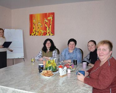 Wir organisierten ein Treffen. Zuerst führten wir die Mütter durch das Haus und erzählten ihnen Neuigkeiten über ihre Kinder. Bei einer Tasse Tee spielten wir Kennenlernspiele. Unsere Gäste berichteten über ihr Leben, über ihre Sorgen. „Zu Beginn des Krieges konnten meine Töchter mit der Situation nicht umgehen. Die eine packte ständig ihren Koffer ein und wieder aus.“ Wir sprechen darüber, wie Gott uns auch im Schweren Kraft schenkt.